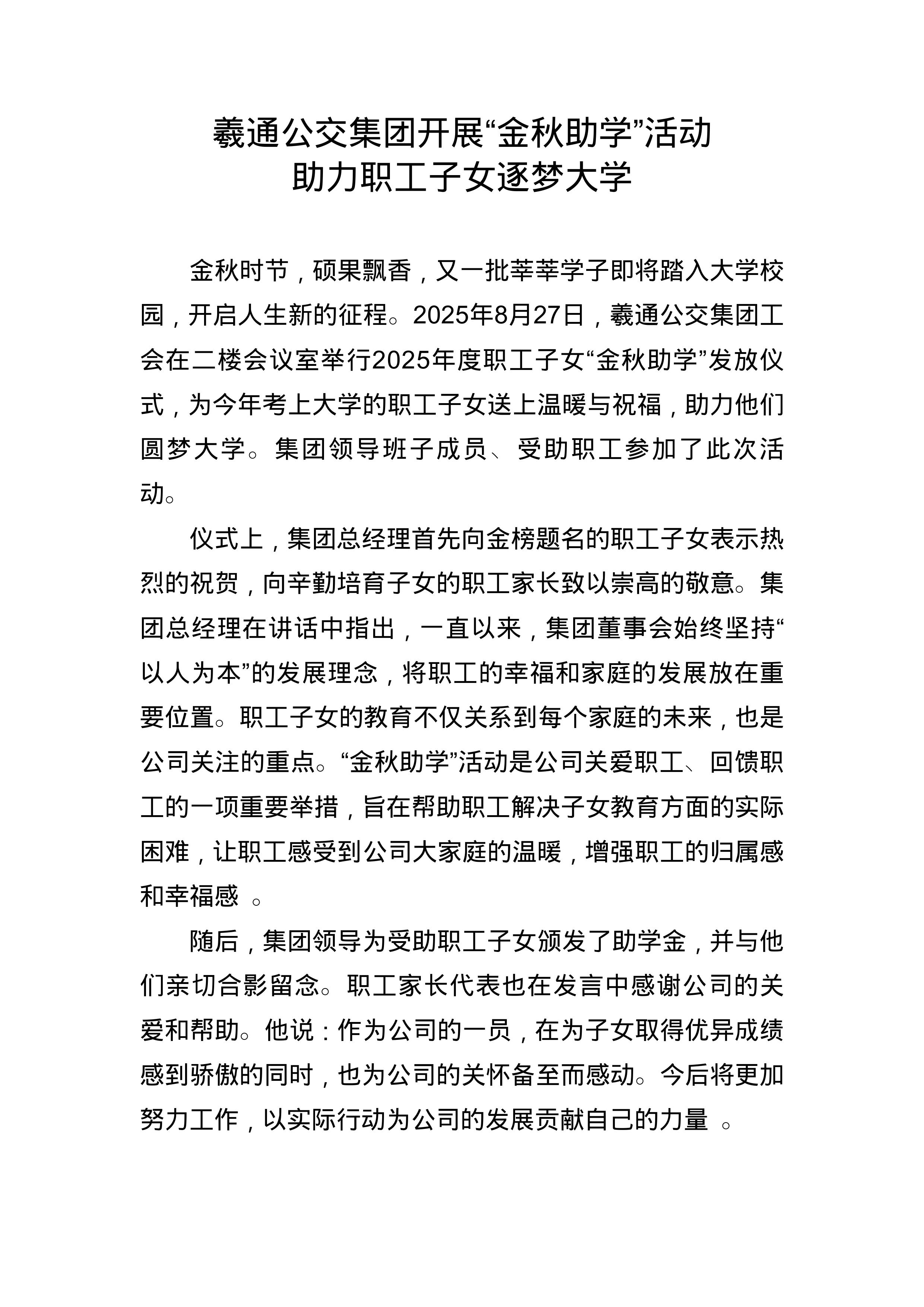 羲通公交集團(tuán)開展“金秋助學(xué)”活動(dòng)助力職工子女逐夢大學(xué)